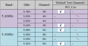 测试5GWiFi时要对其测试信道进行选择,以下802.11a模式下5.2G跟5.3G测试信道